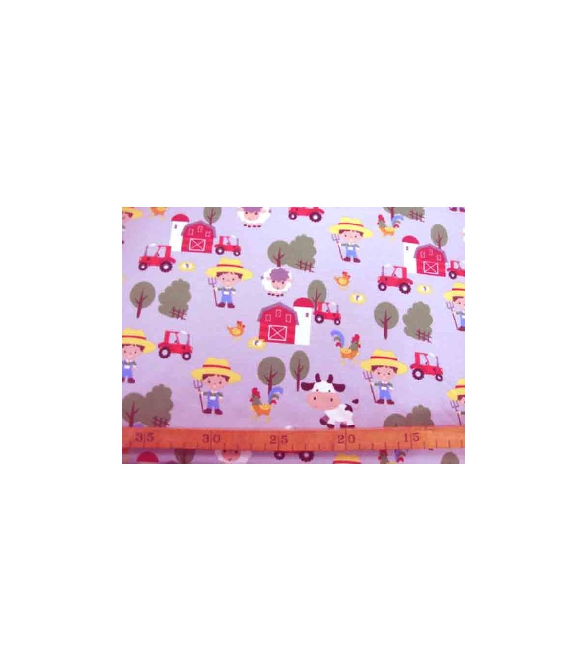 Een lichtgrijze tricot met een boerderij print. Rekt in de breedte en in de lengte. Huidvriendelijk, milieuvriendelijk en kindvriendelijk geproduceerd.