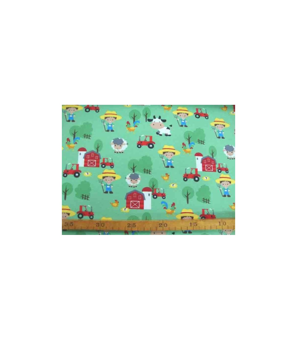 Een Limegroene tricot met een boerderij print. Rekt in de breedte en in de lengte. Huidvriendelijk, milieuvriendelijk en kindvriendelijk geproduceerd.