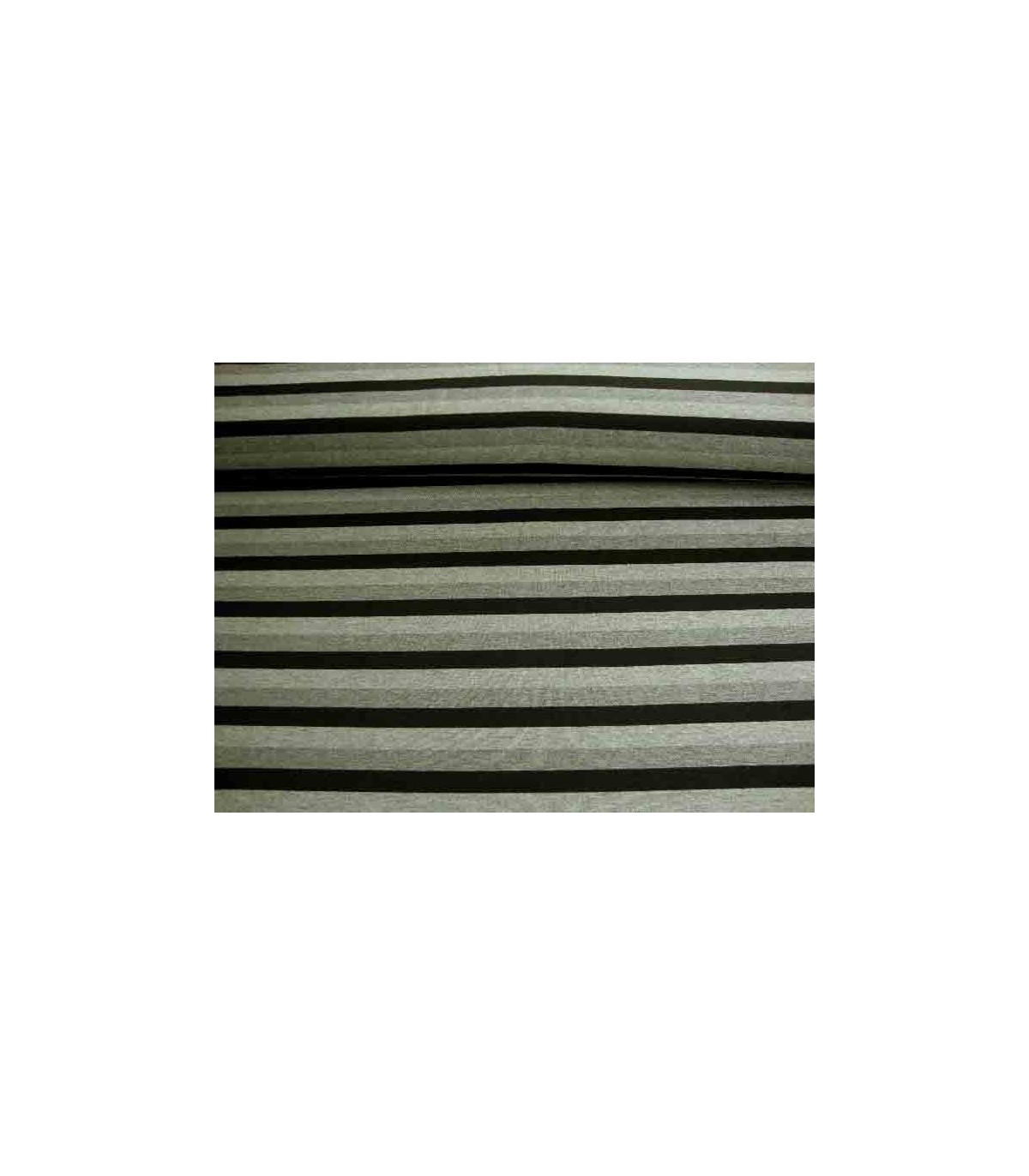 Een wat zwaardere kwaliteit streeptricot in de kleuren zwart,grijs, lichtgrijs. De streep is ca. 18mm. breed.