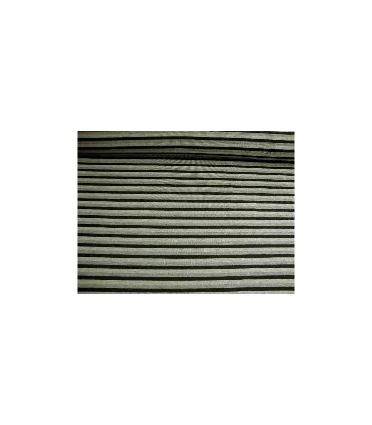 Een wat zwaardere kwaliteit streeptricot in de kleuren zwart,grijs, lichtgrijs. De streep is ca. 7mm. breed.