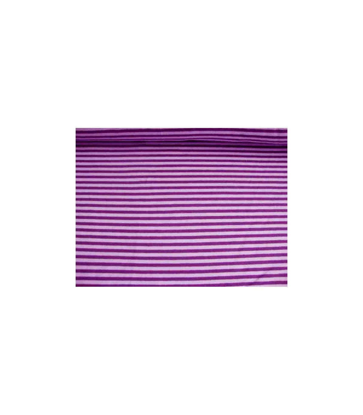 Een 2 kleurige streep tricot, paars/lila. Rekt zowel in de breedte als in de lengte. De streepjes zijn 5 mm. breed.