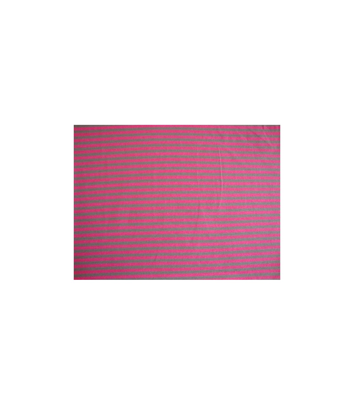 Een 2 kleurige streep tricot, grijs/pink. Rekt zowel in de breedte als in de lengte. De streepjes zijn 5 mm. breed