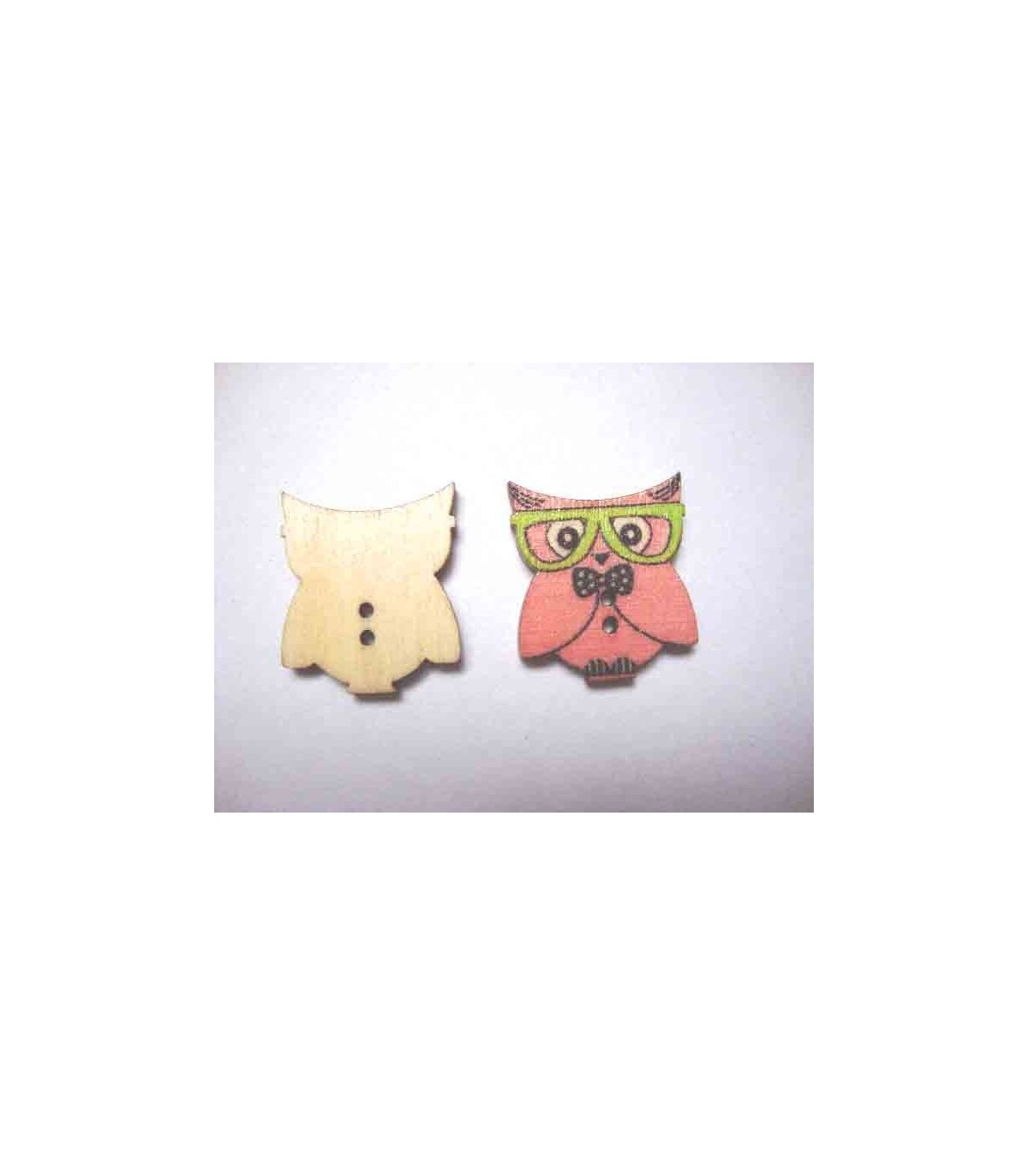 Houten knoop gekleurd Uil Roze