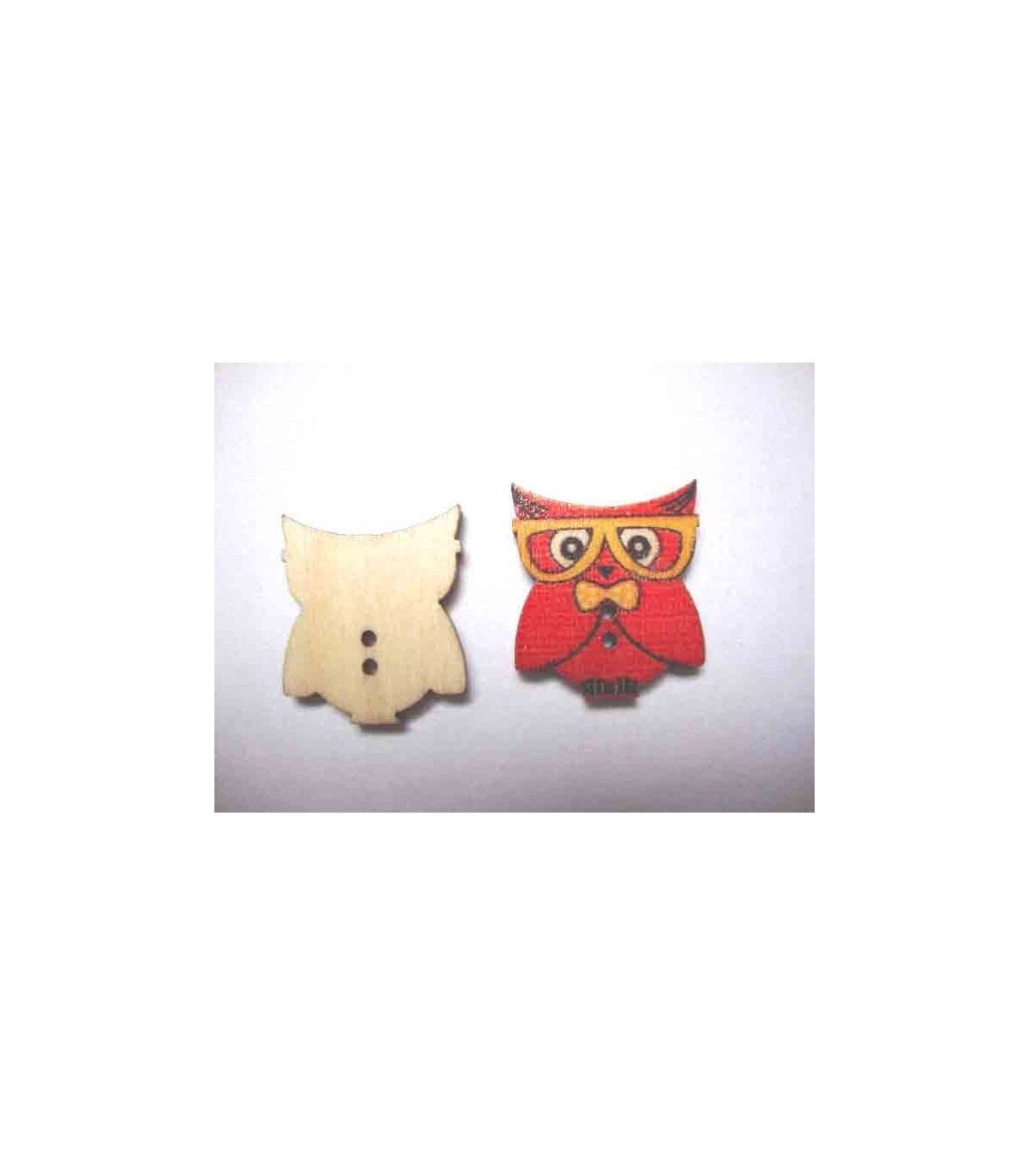 Houten knoop gekleurd Uil Rood