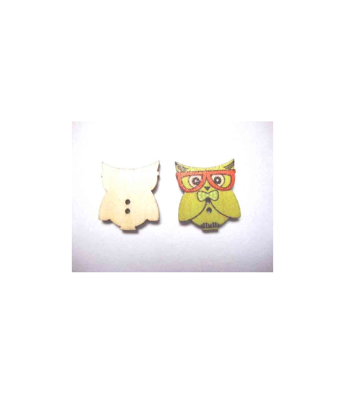 Houten knoop gekleurd Uil Lime/oranje