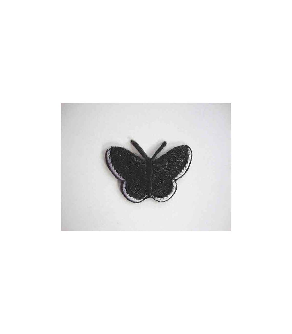 Een opstrijkbare vlinder applicatie van 5 x 3.5 cm. Zwart