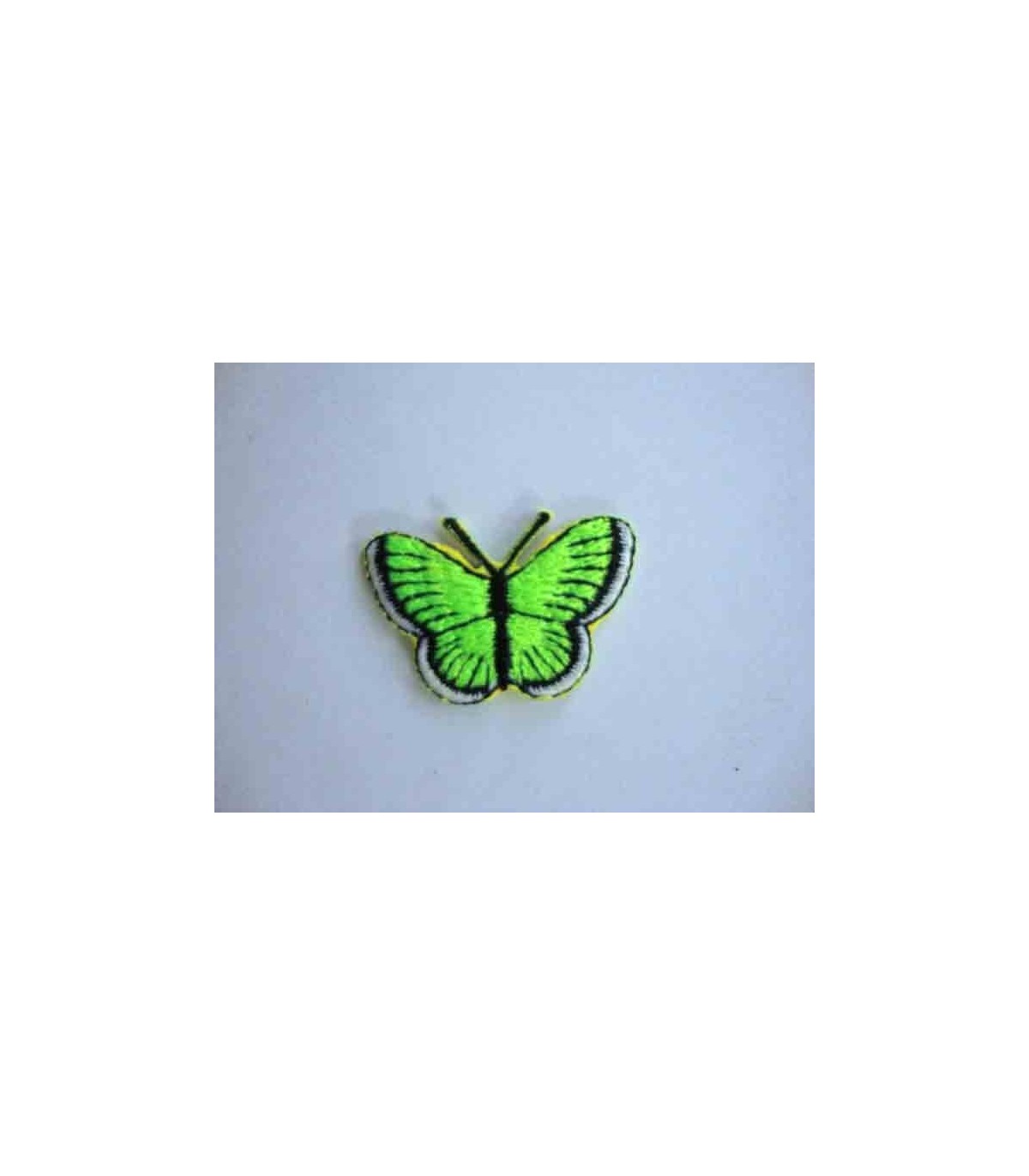 Een opstrijkbare vlinder applicatie van 3 x 2.5 cm.