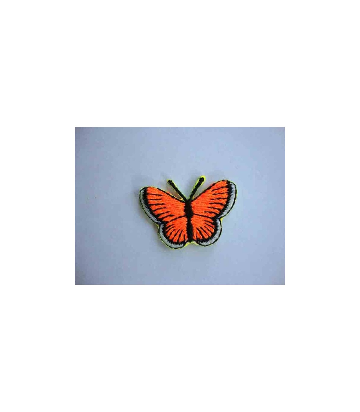 Een opstrijkbare vlinder applicatie van 3 x 2.5 cm.