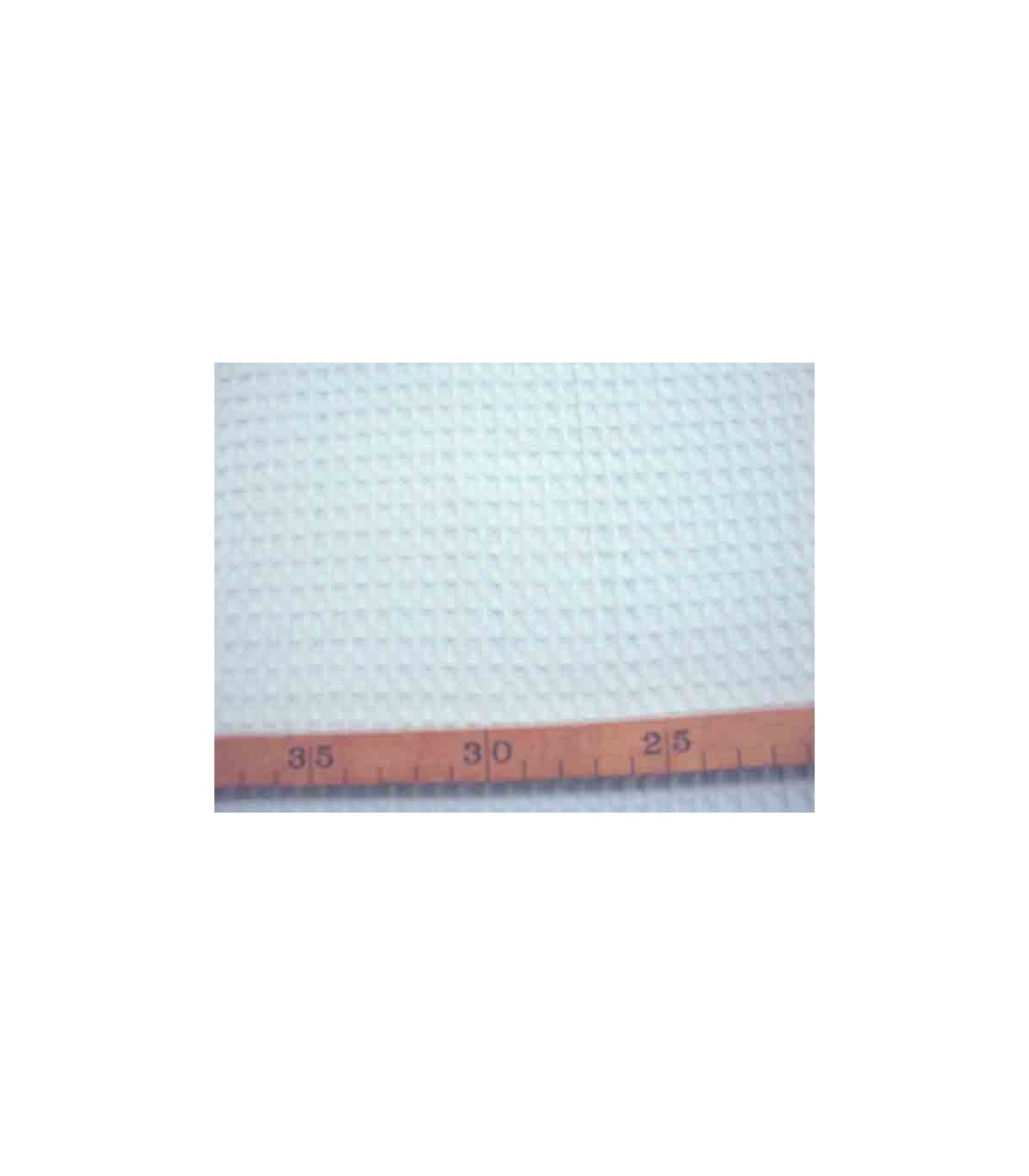 Lichtblauw grof wafeldoek. Het blokje is ongeveer 7 x 7 mm.