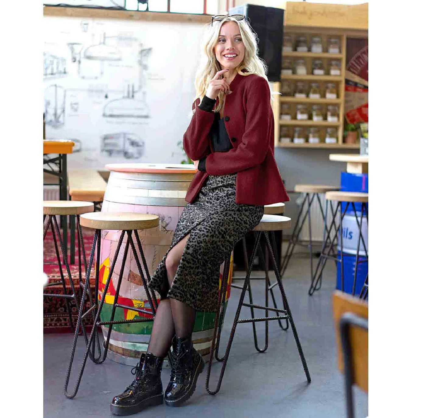 Walkloden boucle wolvilt Donker Rood 4578-15