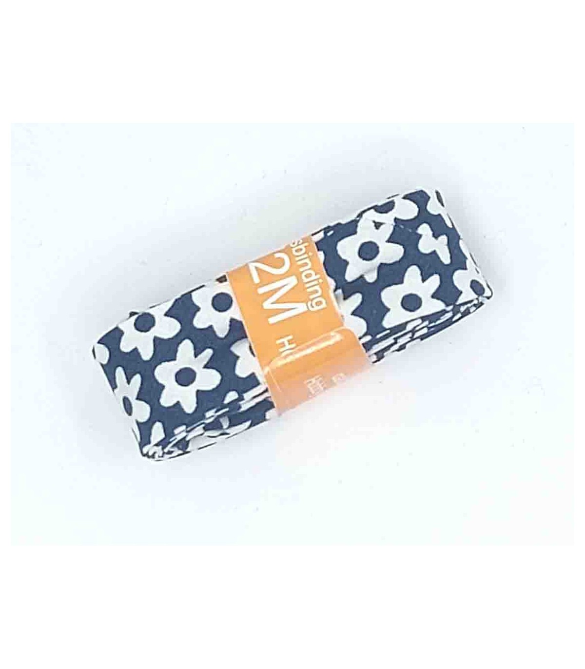 Biaisband bundel 2 mtr Marine met witte bloem 3003H