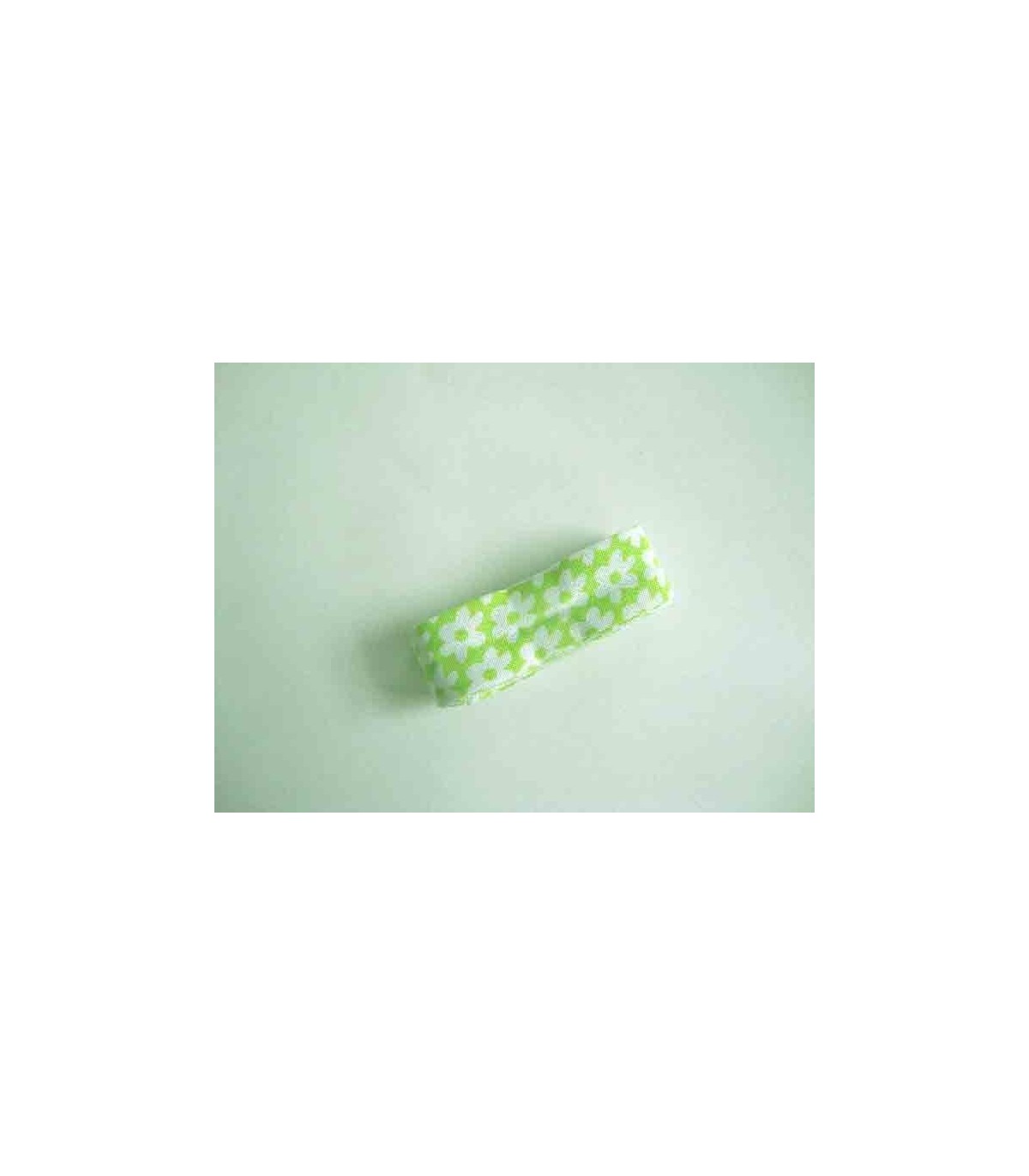 Een bundel biaisband van 2 meter lang. Lime met witte bloem 2 cm. breed