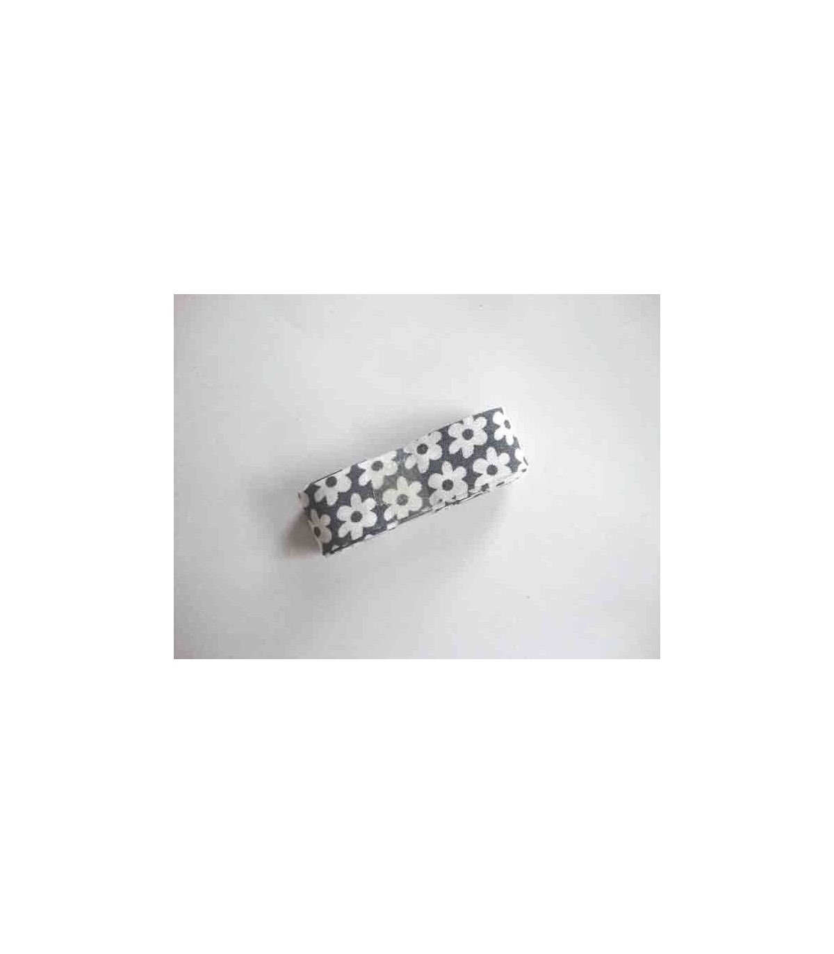 Biaisband bundel 2 mtr. Grijs met witte bloem 1246H