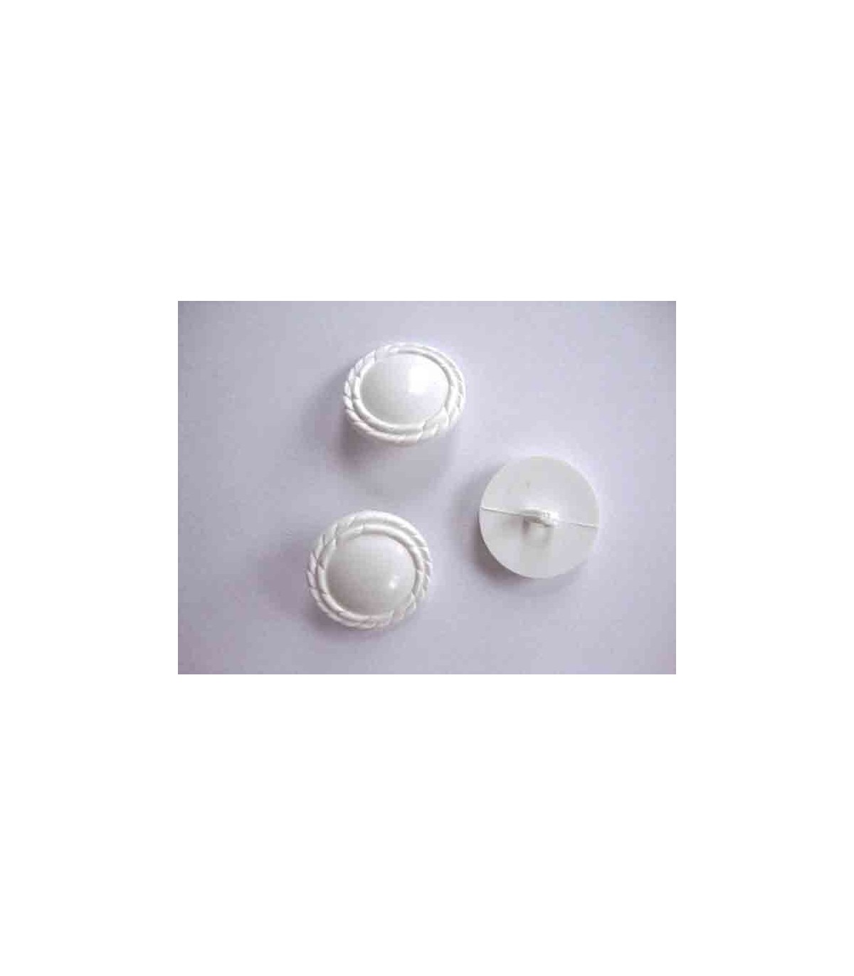 Een witte kunststof knoop op een steeltje met een schulprandje. 25 mm. doorsnee.