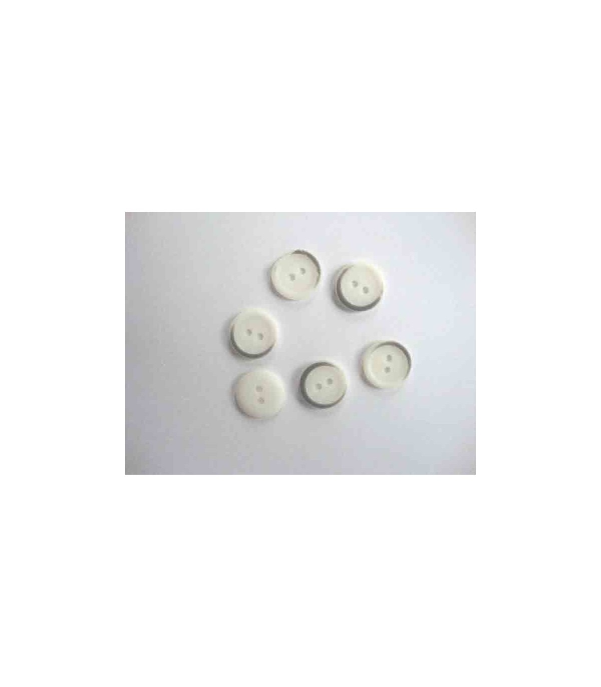Een witte kunststof knoop met een doorsnee van 15 mm.