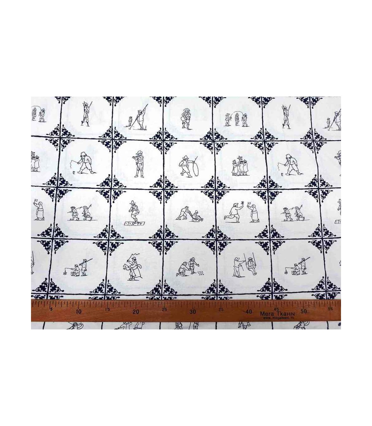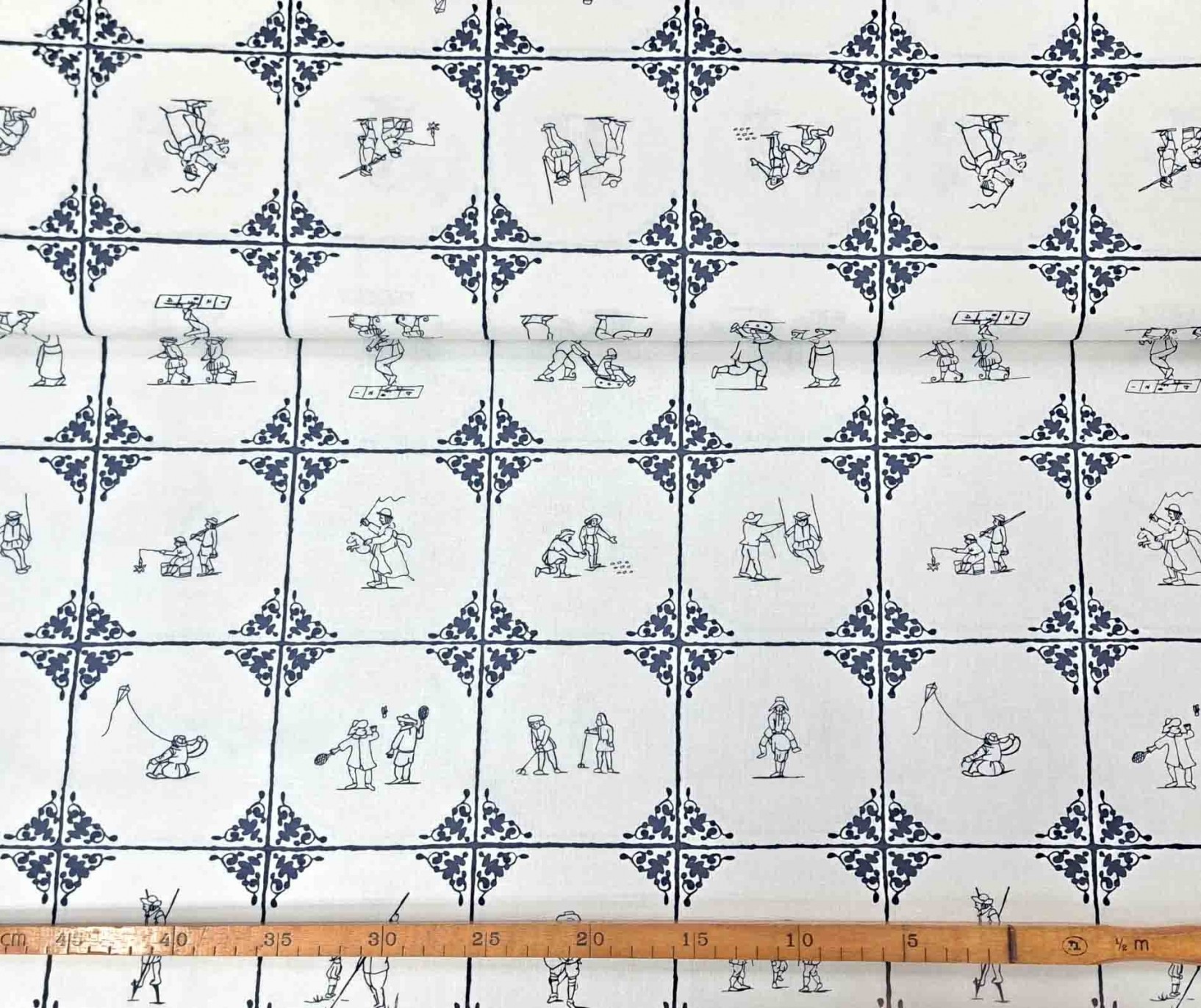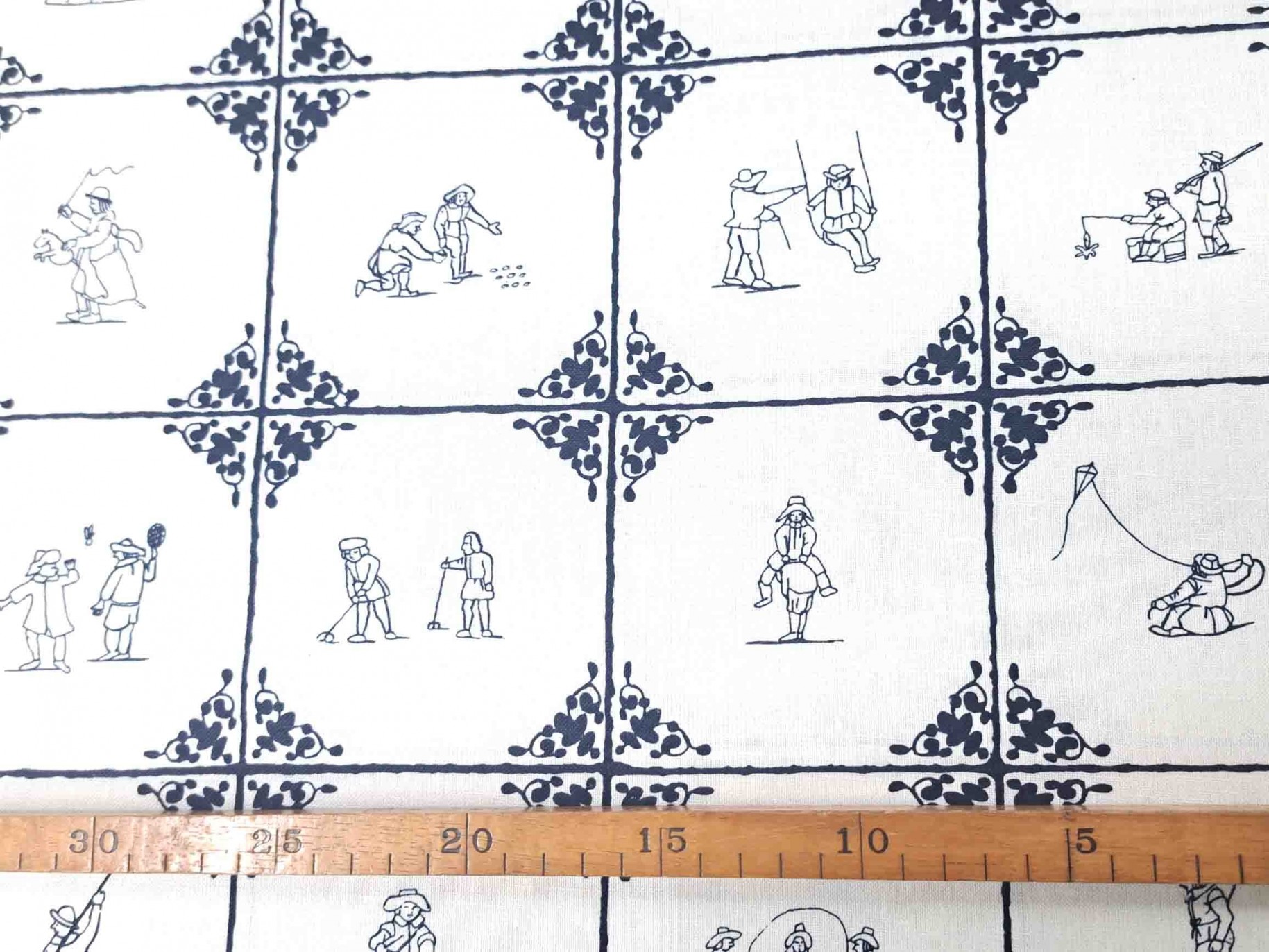 Linnen Delftsblauw met zwarte oud Hollandse kinderspelen.