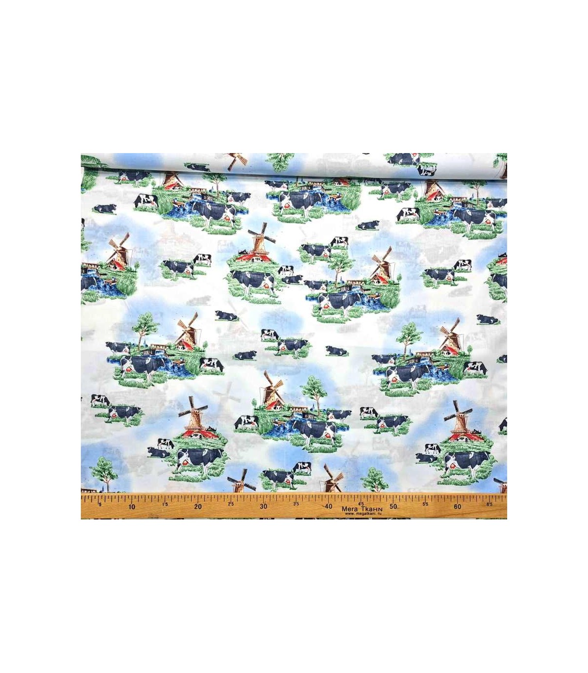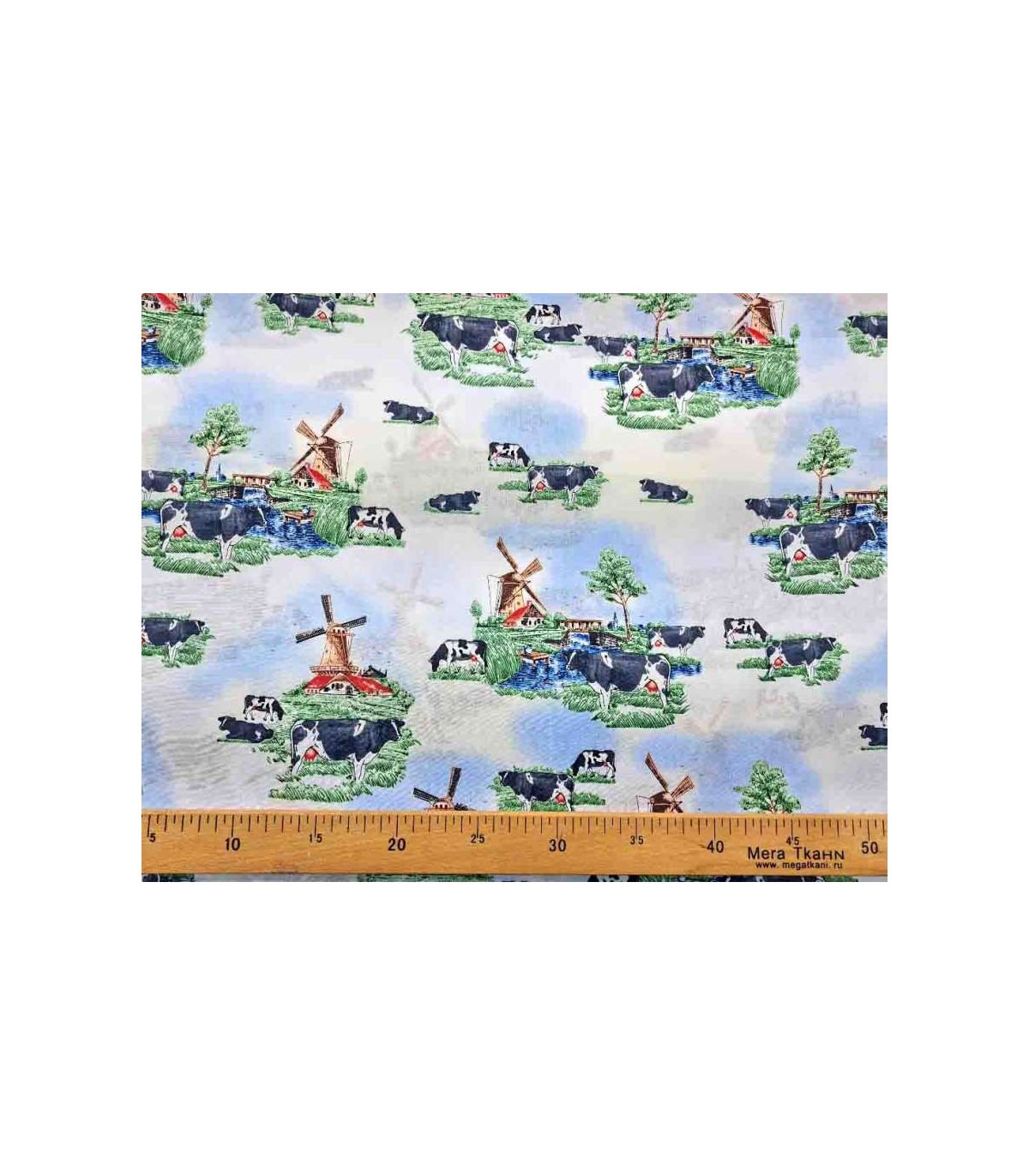 Delfts blauwe stof blauw gevlekt met huisjes 24tg
