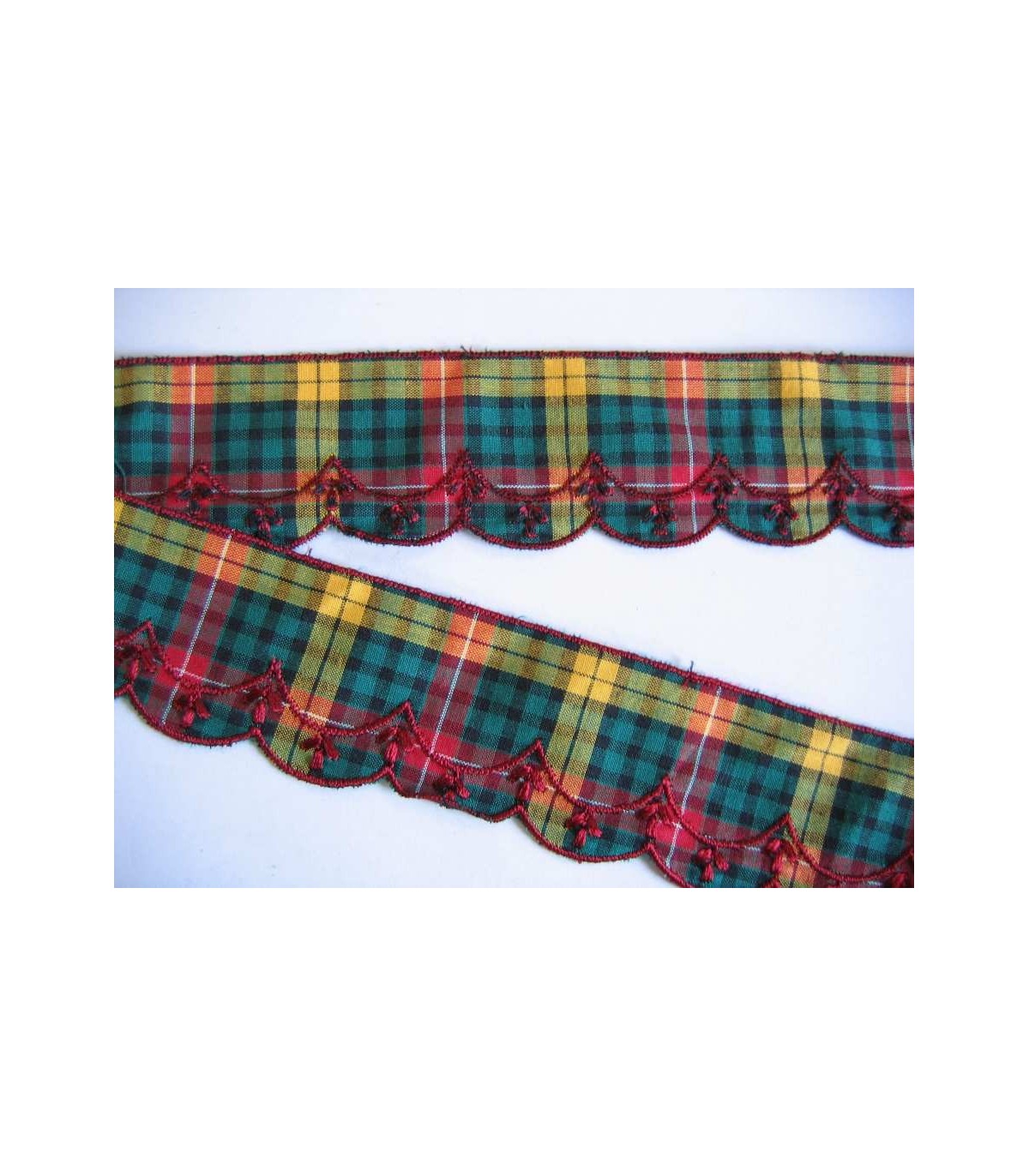 Schotse ruit met rood borduursel. Kant breedte is 40 mm. Aan beide zijde netjes afgewerkt.